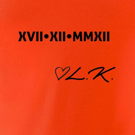Datum vašeho výročí - seznámení, svatby, prvního rande, zkrátka cokoliv tam chcete mít, napíšeme na prso římskými číslicemi. Datum napište do poznámky běžný, na římské ho převedeme.