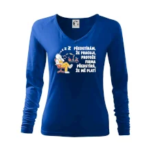 Tolerantnější vypasování dámského střihu, který je vhodný pro všechny typy postavy, ideální délka rukávů a konzervativní výstřih zakončený žebrováním, které skvěle drží tvar.