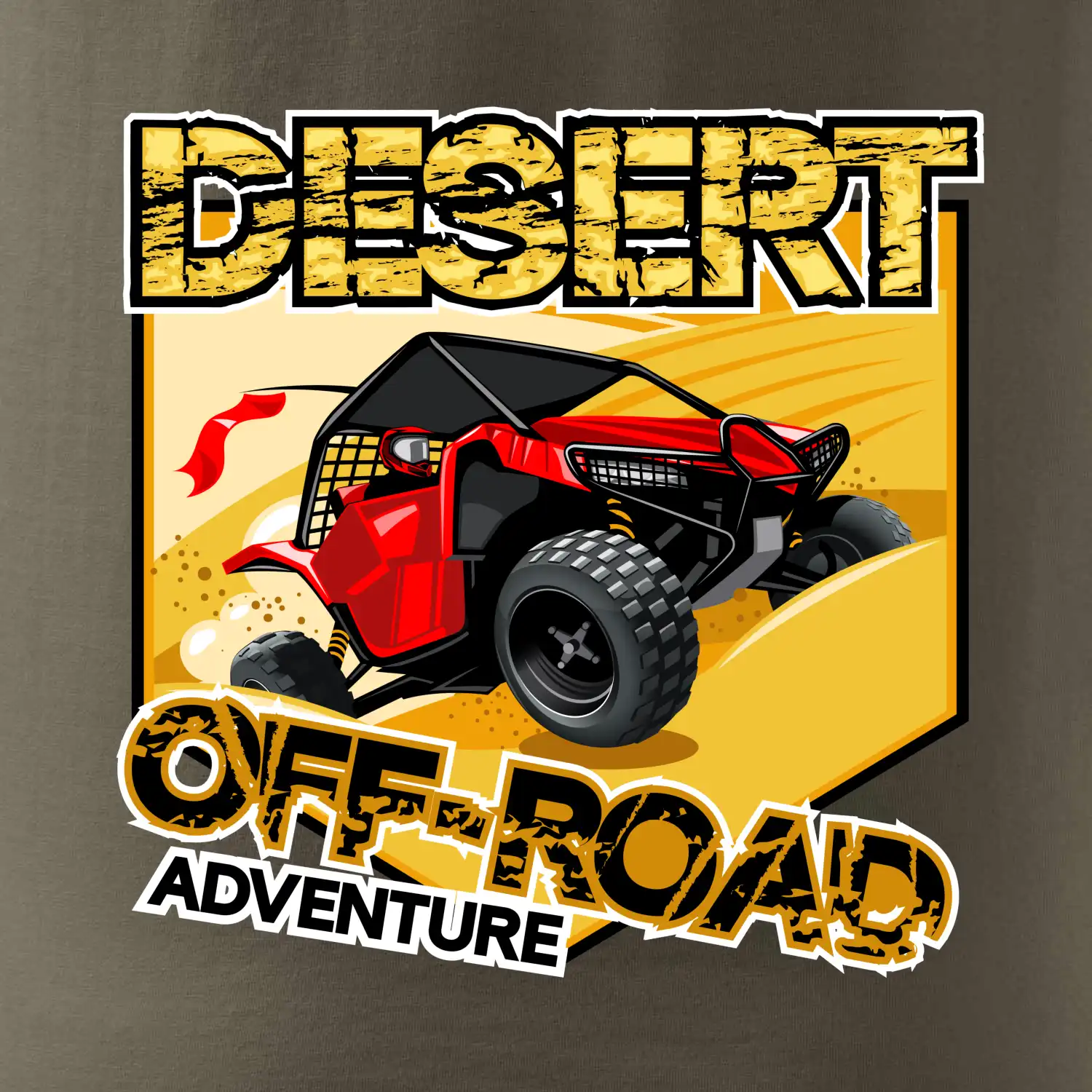 Triko pro motoristy, na kterém je červená buggy čtyřkolka ATV. Motoristické triko kde je off road čtyřkolka musí mít doma každý motorista. Triko se čtyřkolkou je vhodný dárek pro motoristu, který má rád adrenalin. Bugina na triku je jako živá, prostě parádní auto.