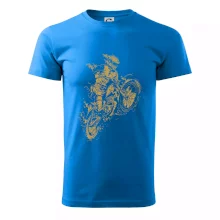 Pánské tričko s krátkým rukávem vyšší gramáže. Módní, přiléhavý střih s bočními švy. Úzký lem průkrčníku ze žebrového úpletu s přídavkem 5 % elastanu. Vnitřní část zadního průkrčníku začištěna páskou. Zpevněný ramenní šev.