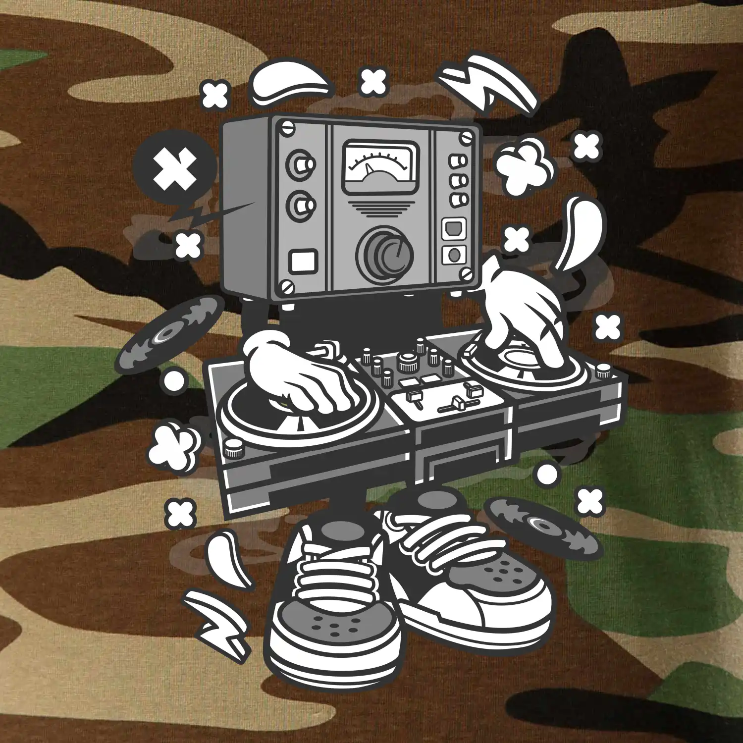 Triko pro dýdžeje, na kterém je mixážní pult. Stylový dárek pro dýdžeje. Rozjeď to na diskotéce s dýdžejským trikem a hudba bude ještě lepší než kdy dřív!