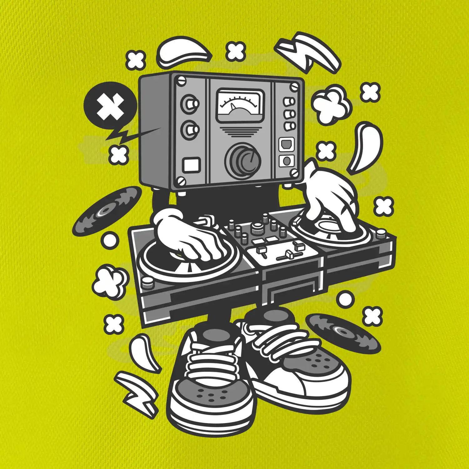 Triko pro dýdžeje, na kterém je mixážní pult. Stylový dárek pro dýdžeje. Rozjeď to na diskotéce s dýdžejským trikem a hudba bude ještě lepší než kdy dřív!