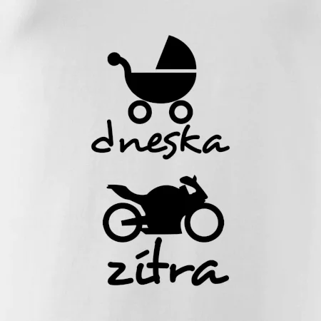 Hledáš vhodný dárek pro novorozeně? Co takhle stylové bodýčko pro budoucího motorkáře! Body s motivem dnes v kočárku, zítra na motorce je vhodný dárek pro motorkářské dítě. Právě takový prcek určitě kočárek brzy vymění za motorku.