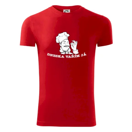 Triko pro kuchaře, na kterém je šéfkuchař s nápisem "Dneska vařím já", je vhodný dárek pro kuchaře. každý kuchař i kuchtík, který má rád vaření, by měl mít tohle triko doma.