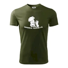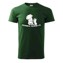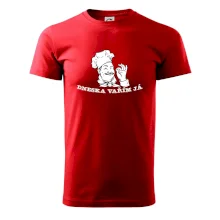 Triko pro kuchaře, na kterém je šéfkuchař s nápisem "Dneska vařím já", je vhodný dárek pro kuchaře. každý kuchař i kuchtík, který má rád vaření, by měl mít tohle triko doma.