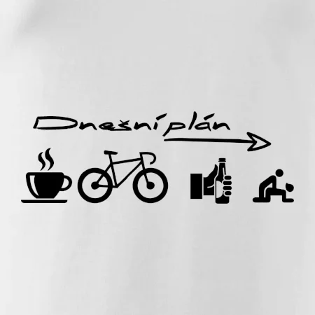 Máš už plán pro dnešní den? Řekni to tričkem! Káva,kolo,pak nějaké to pivko a pak už jen ... Ideální triko jako dárek pro cyklistu, kterí ví co chce. Moderní cyklistické triko v super designu. Triko v anglické verzi najdeš tady.