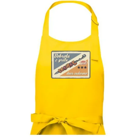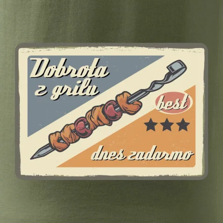 Triko pro gurmána, který má rád grilování, zdobí nápis "Dobrota z grilu, dnes zadarmo" a grilovaný masový špíz. Triko pro kuchaře by si měl pořídit každý, kdo je pravý pán grilu! Triko s grilem je vhodný dárek pro kuchaře na letní grilování na zahradě.