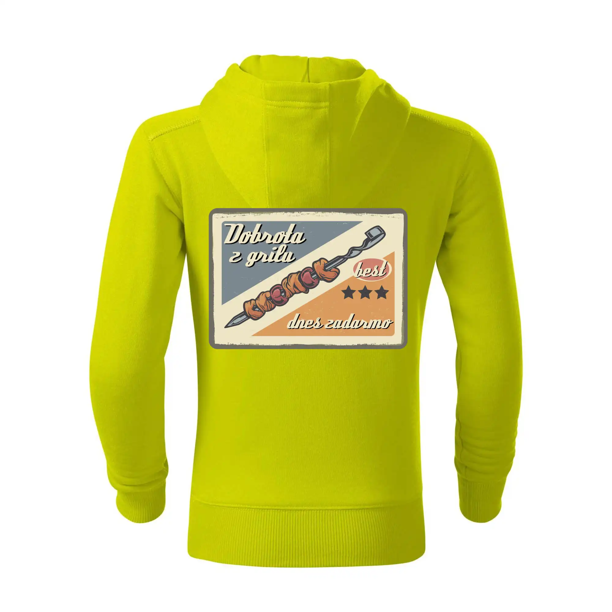 Triko pro gurmána, který má rád grilování, zdobí nápis "Dobrota z grilu, dnes zadarmo" a grilovaný masový špíz. Triko pro kuchaře by si měl pořídit každý, kdo je pravý pán grilu! Triko s grilem je vhodný dárek pro kuchaře na letní grilování na zahradě.
