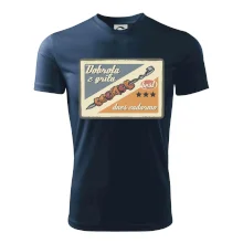 Triko pro gurmána, který má rád grilování, zdobí nápis "Dobrota z grilu, dnes zadarmo" a grilovaný masový špíz. Triko pro kuchaře by si měl pořídit každý, kdo je pravý pán grilu! Triko s grilem je vhodný dárek pro kuchaře na letní grilování na zahradě.