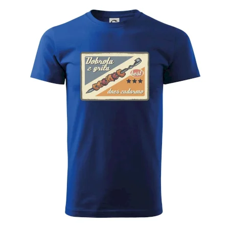 Triko pro gurmána, který má rád grilování, zdobí nápis "Dobrota z grilu, dnes zadarmo" a grilovaný masový špíz. Triko pro kuchaře by si měl pořídit každý, kdo je pravý pán grilu! Triko s grilem je vhodný dárek pro kuchaře na letní grilování na zahradě.