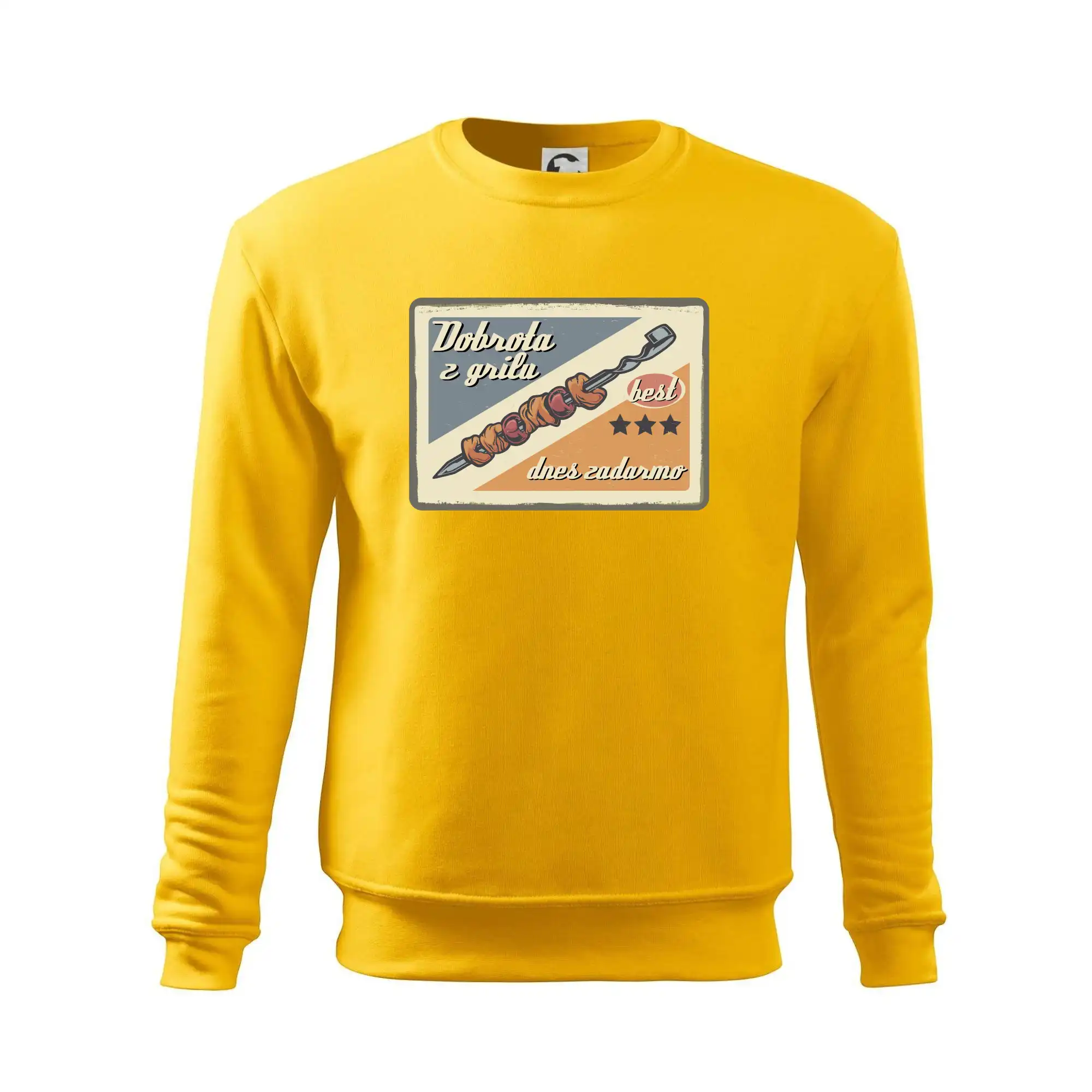 Triko pro gurmána, který má rád grilování, zdobí nápis "Dobrota z grilu, dnes zadarmo" a grilovaný masový špíz. Triko pro kuchaře by si měl pořídit každý, kdo je pravý pán grilu! Triko s grilem je vhodný dárek pro kuchaře na letní grilování na zahradě.