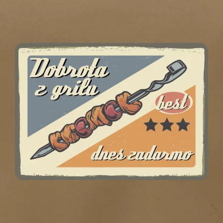 Triko pro gurmána, který má rád grilování, zdobí nápis "Dobrota z grilu, dnes zadarmo" a grilovaný masový špíz. Triko pro kuchaře by si měl pořídit každý, kdo je pravý pán grilu! Triko s grilem je vhodný dárek pro kuchaře na letní grilování na zahradě.