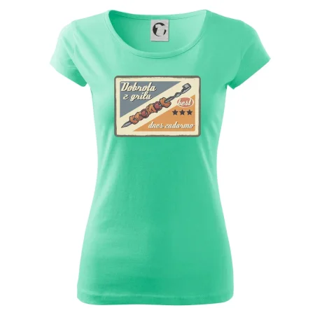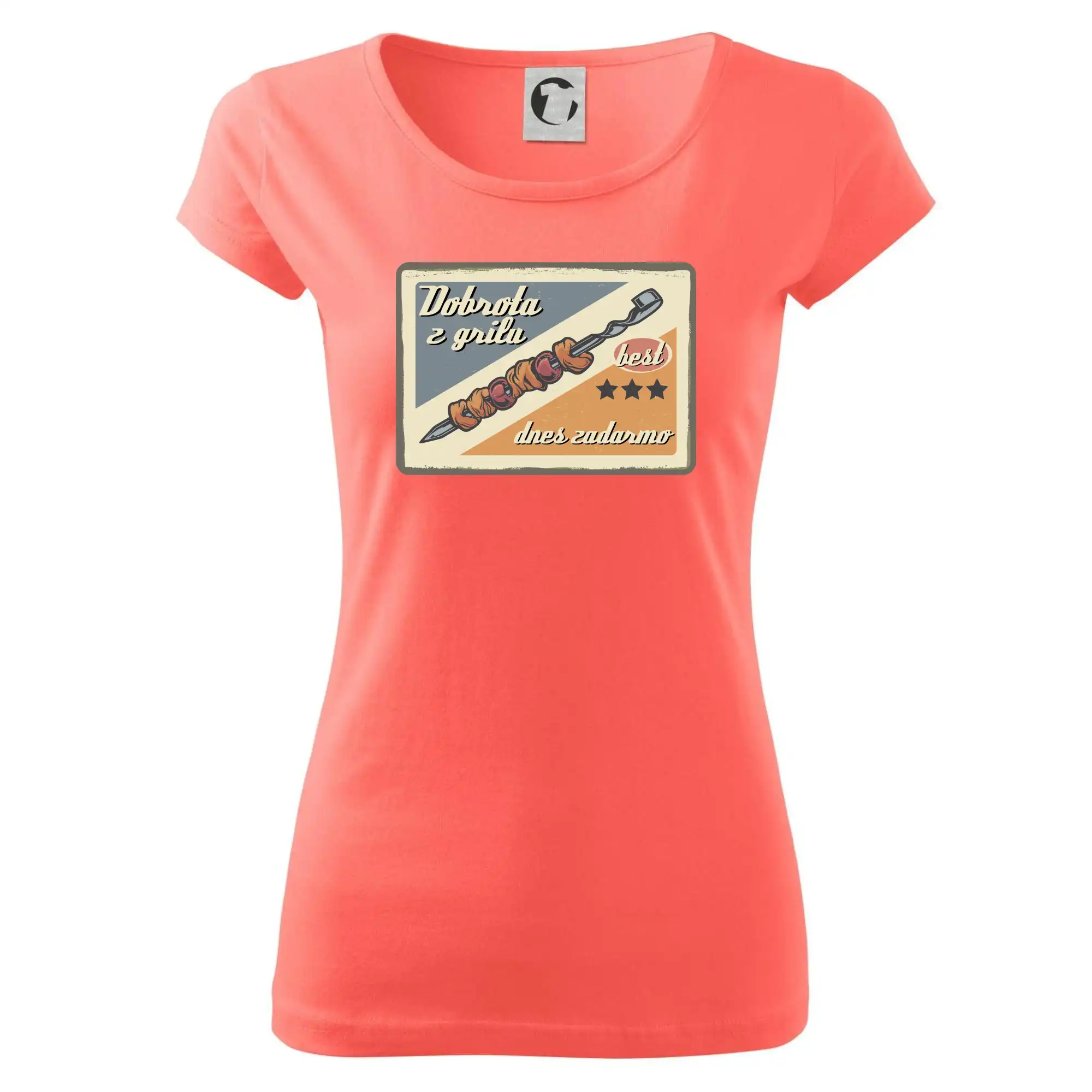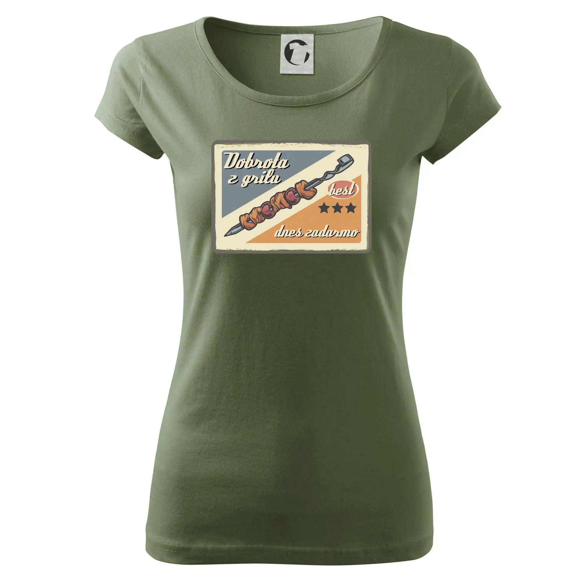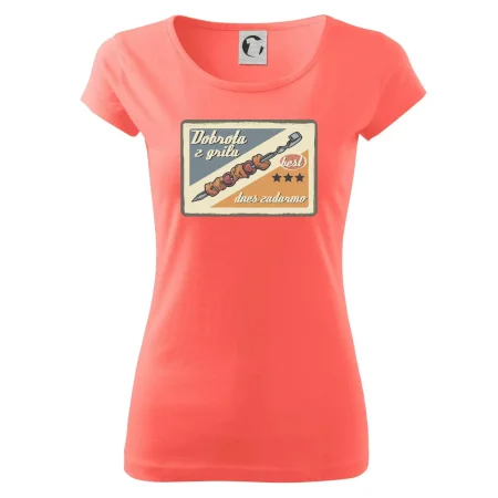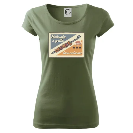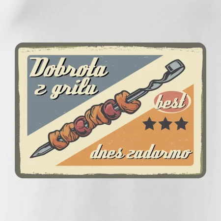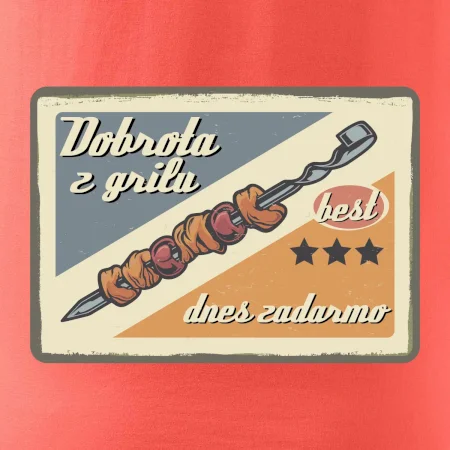 Triko pro gurmána, který má rád grilování, zdobí nápis "Dobrota z grilu, dnes zadarmo" a grilovaný masový špíz. Triko pro kuchaře by si měl pořídit každý, kdo je pravý pán grilu! Triko s grilem je vhodný dárek pro kuchaře na letní grilování na zahradě.
