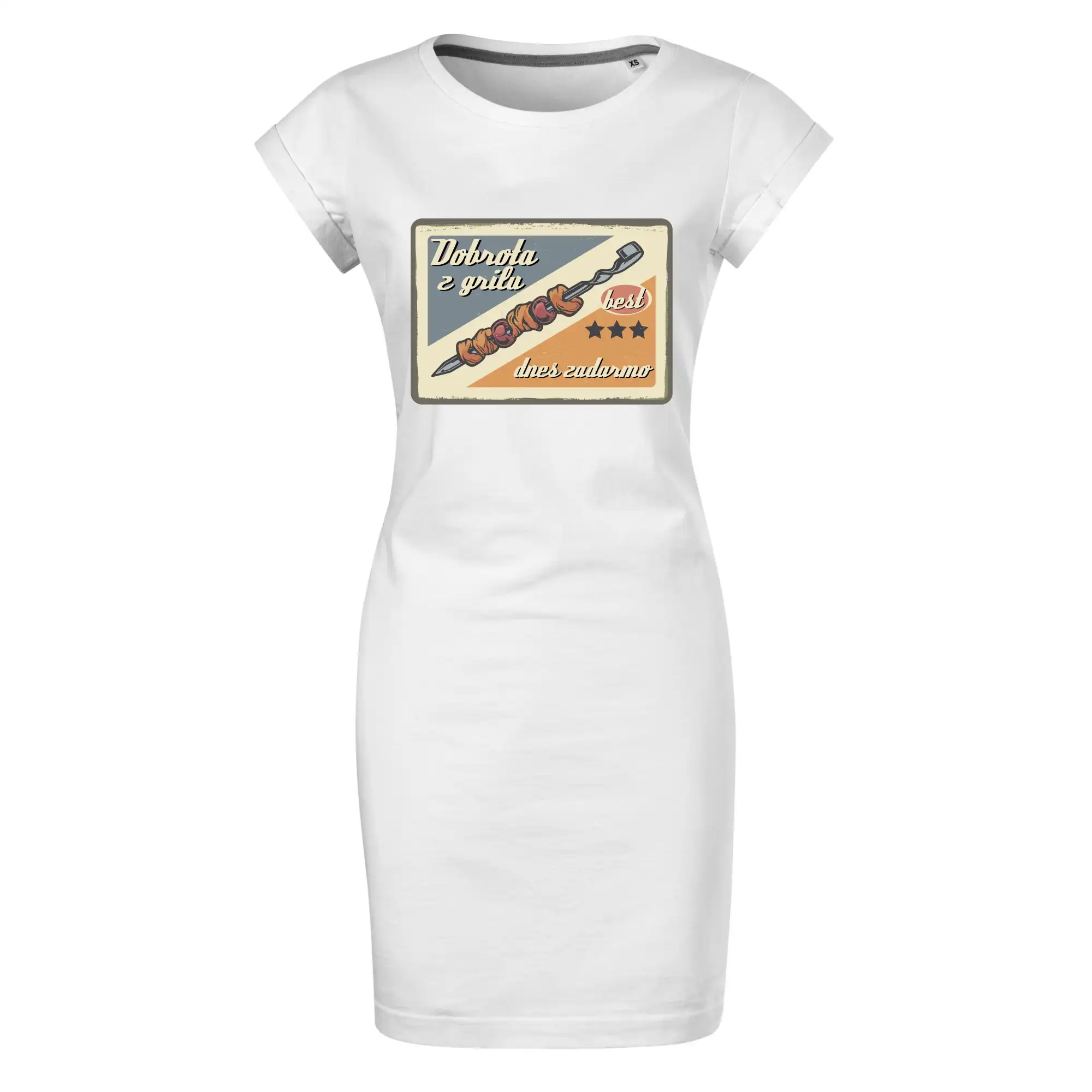 Triko pro gurmána, který má rád grilování, zdobí nápis "Dobrota z grilu, dnes zadarmo" a grilovaný masový špíz. Triko pro kuchaře by si měl pořídit každý, kdo je pravý pán grilu! Triko s grilem je vhodný dárek pro kuchaře na letní grilování na zahradě.
