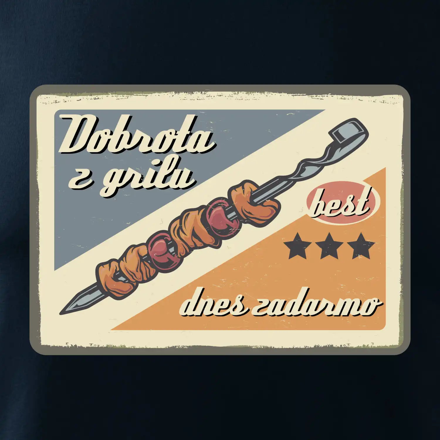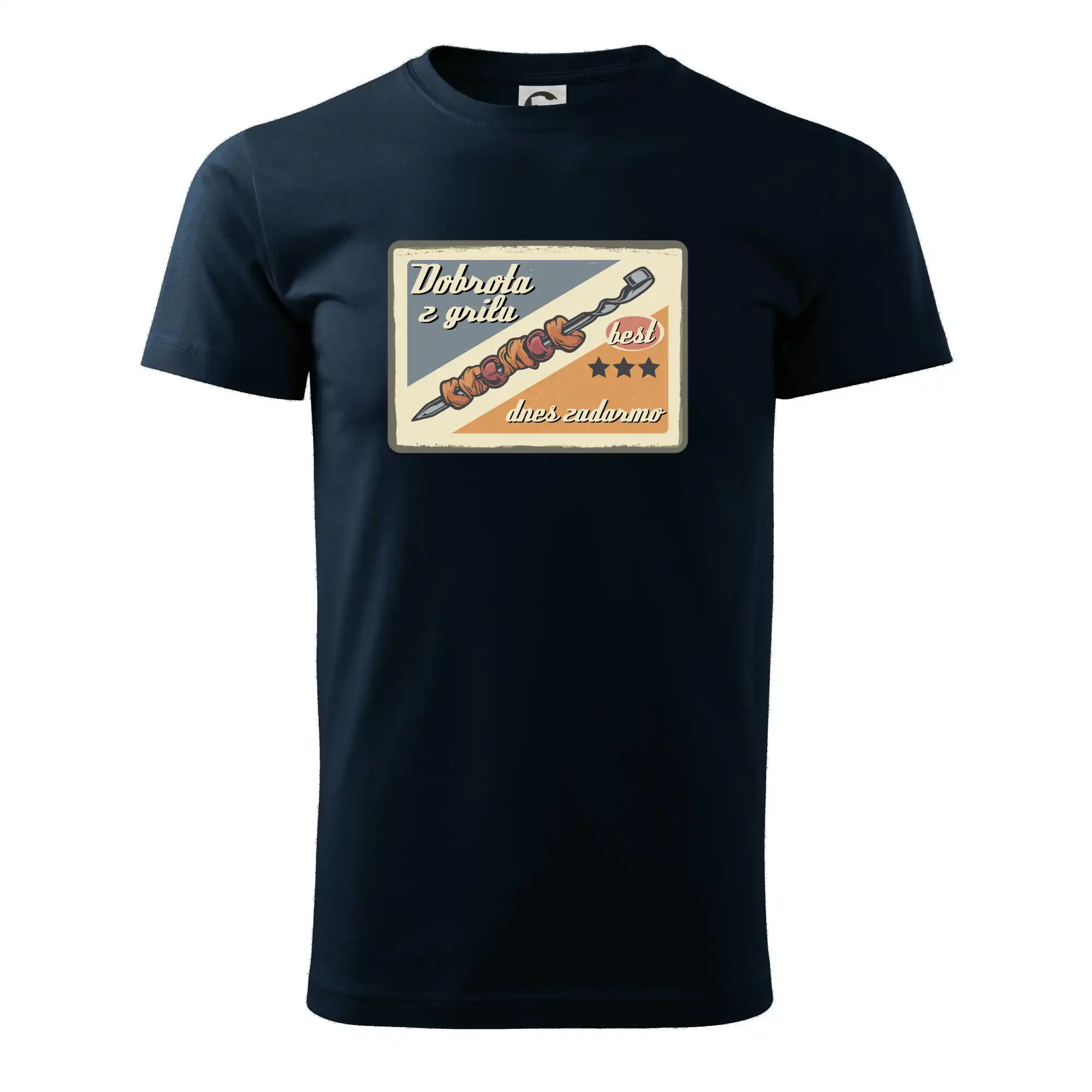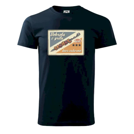 Triko pro gurmána, který má rád grilování, zdobí nápis "Dobrota z grilu, dnes zadarmo" a grilovaný masový špíz. Triko pro kuchaře by si měl pořídit každý, kdo je pravý pán grilu! Triko s grilem je vhodný dárek pro kuchaře na letní grilování na zahradě.