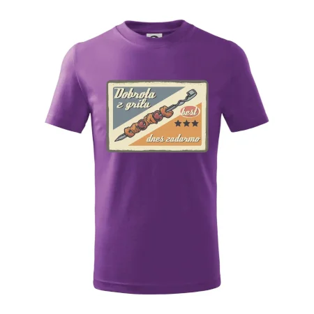 Triko pro gurmána, který má rád grilování, zdobí nápis "Dobrota z grilu, dnes zadarmo" a grilovaný masový špíz. Triko pro kuchaře by si měl pořídit každý, kdo je pravý pán grilu! Triko s grilem je vhodný dárek pro kuchaře na letní grilování na zahradě.