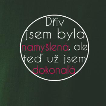 Vtipné tričko pro holku s nápisem "Dřív jsem byla namyšlená, ale teď už jsem dokonalá." Dárek pro vtipnou holku.
