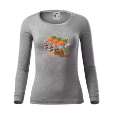 Tolerantnější vypasování dámského střihu, který je vhodný pro všechny typy postavy, ideální délka rukávů a konzervativní výstřih zakončený žebrováním, které skvěle drží tvar.
