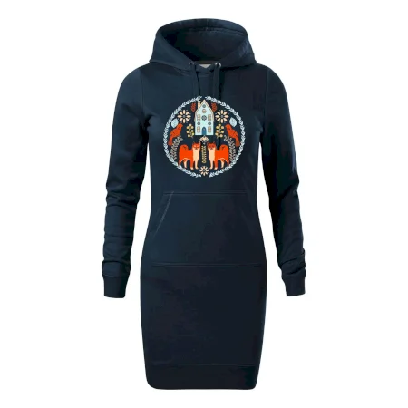 Dámské mikinové šaty MALFINI Snap 419 jsou ideální volbou pro ženy, které hledají pohodlný a stylový kousek pro volný čas nebo každodenní nošení. Lehce vypasovaný střih s bočními švy podtrhuje ženskou siluetu, zatímco kapuce s podšívkou a stahovací šňůrkou dodává ležérní vzhled. Šaty mají délku nad kolena a jsou vybaveny nakládanou kapsou ve stylu „klokanky“. Materiál je měkký a příjemný na dotek díky směsi bavlny a polyesteru s nepočesanou vnitřní stranou.