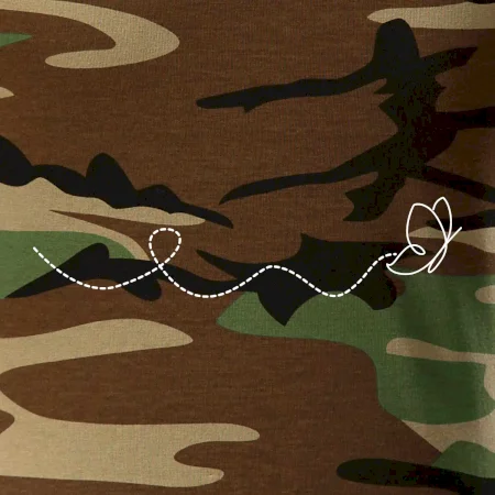 Tričko střední gramáže v barvách camouflage. Střih s bočními švy. Lem průkrčníku ze žebrového úpletu s přídavkem 5 % elastanu. Vnitřní část zadního průkrčníku začištěna páskou v barvě camouflage.