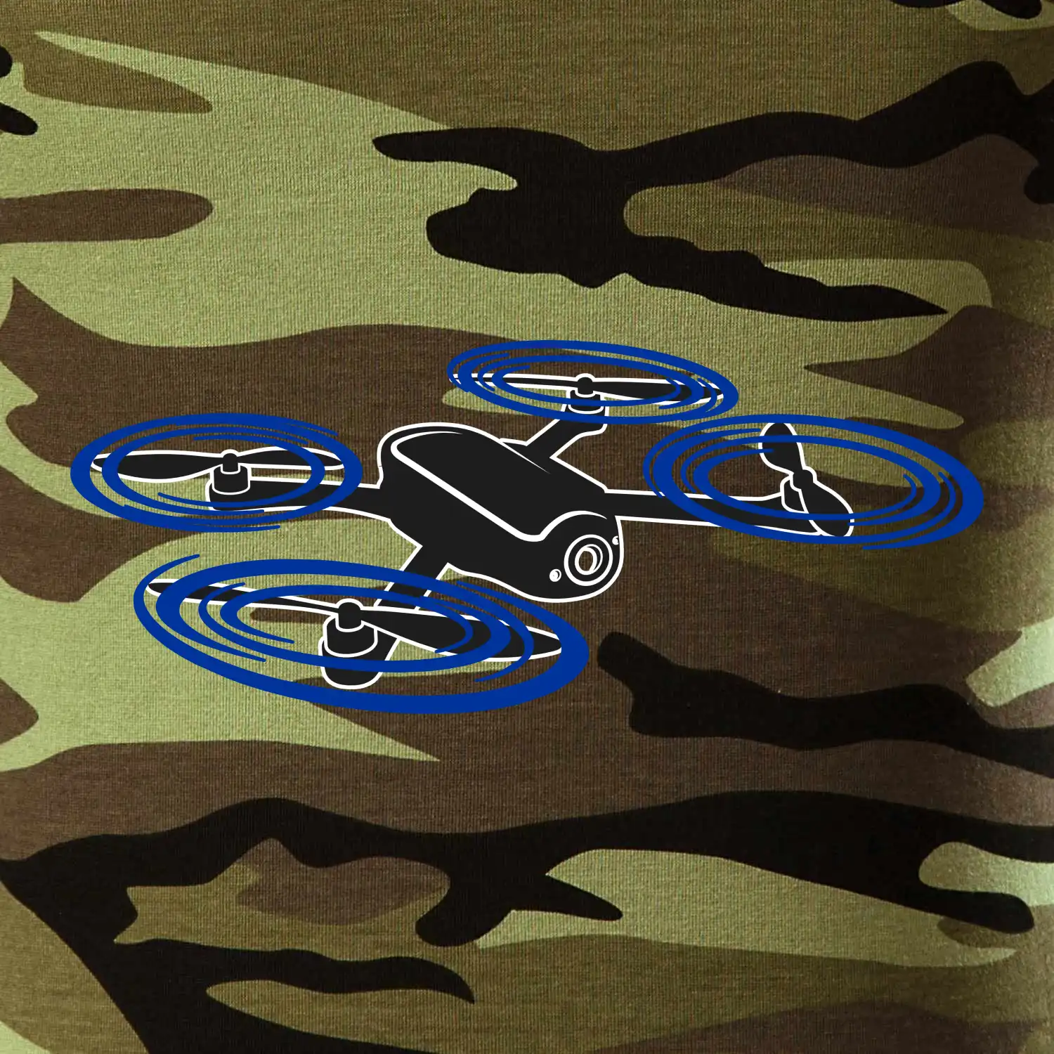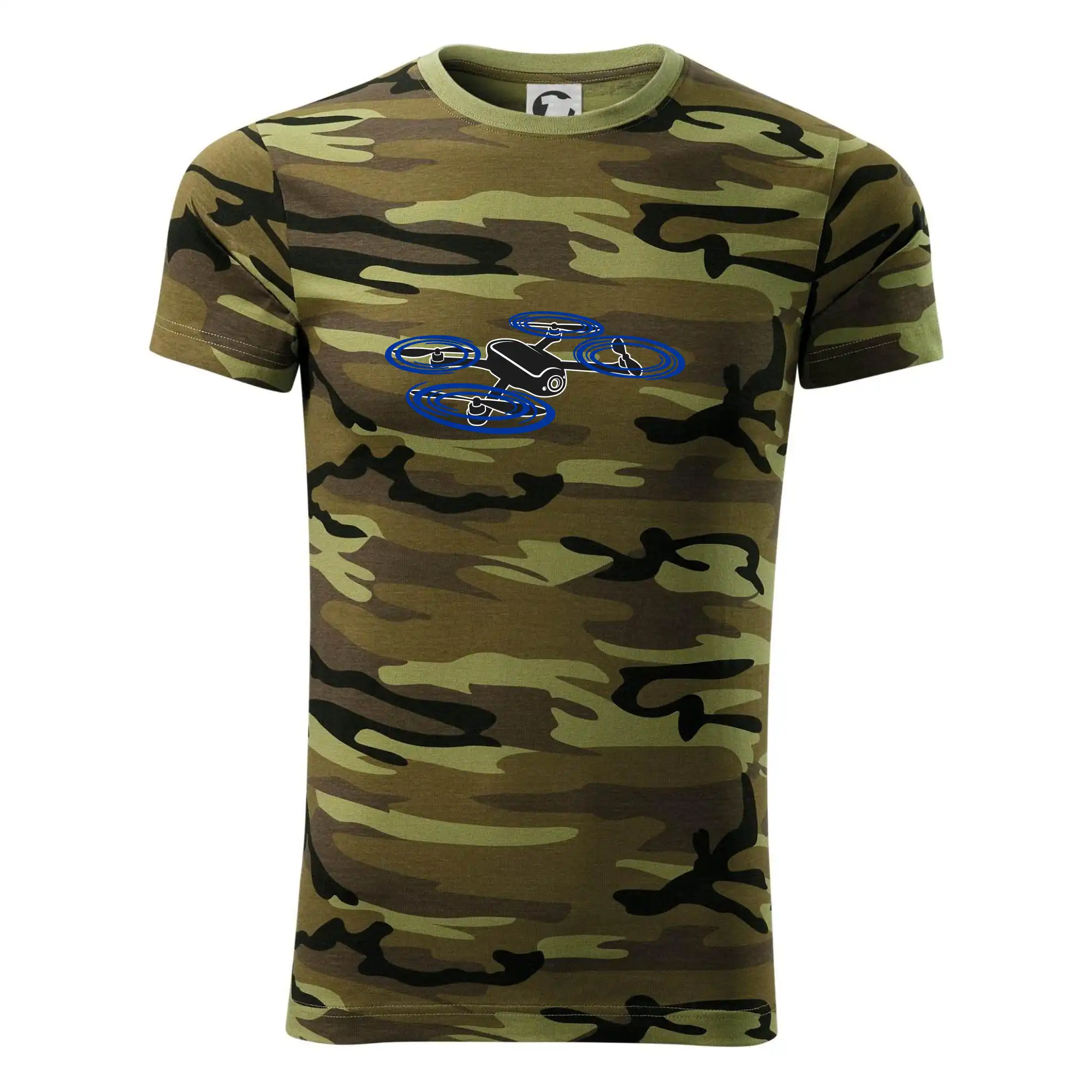 Tričko střední gramáže v barvách camouflage. Střih s bočními švy. Lem průkrčníku ze žebrového úpletu s přídavkem 5 % elastanu. Vnitřní část zadního průkrčníku začištěna páskou v barvě camouflage.