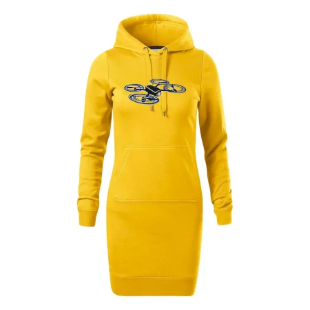 Dámské mikinové šaty MALFINI Snap 419 jsou ideální volbou pro ženy, které hledají pohodlný a stylový kousek pro volný čas nebo každodenní nošení. Lehce vypasovaný střih s bočními švy podtrhuje ženskou siluetu, zatímco kapuce s podšívkou a stahovací šňůrkou dodává ležérní vzhled.