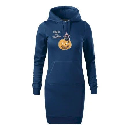Dámské mikinové šaty MALFINI Snap 419 jsou ideální volbou pro ženy, které hledají pohodlný a stylový kousek pro volný čas nebo každodenní nošení. Lehce vypasovaný střih s bočními švy podtrhuje ženskou siluetu, zatímco kapuce s podšívkou a stahovací šňůrkou dodává ležérní vzhled.