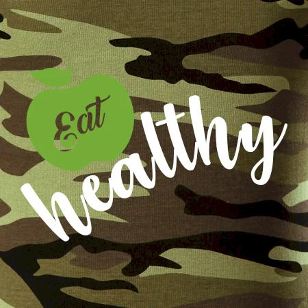 Tričko střední gramáže v barvách camouflage. Střih s bočními švy. Lem průkrčníku ze žebrového úpletu s přídavkem 5 % elastanu. Vnitřní část zadního průkrčníku začištěna páskou v barvě camouflage.