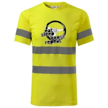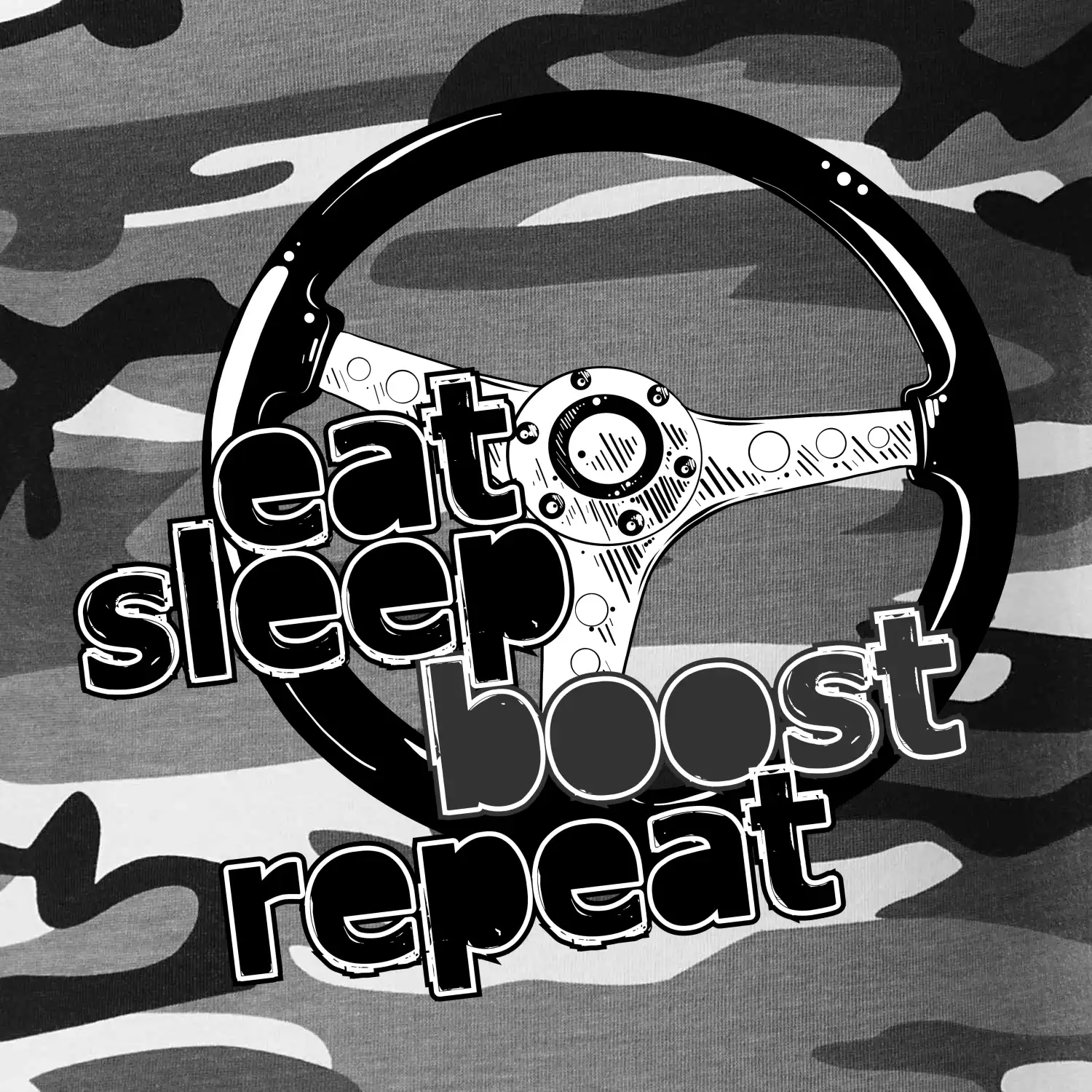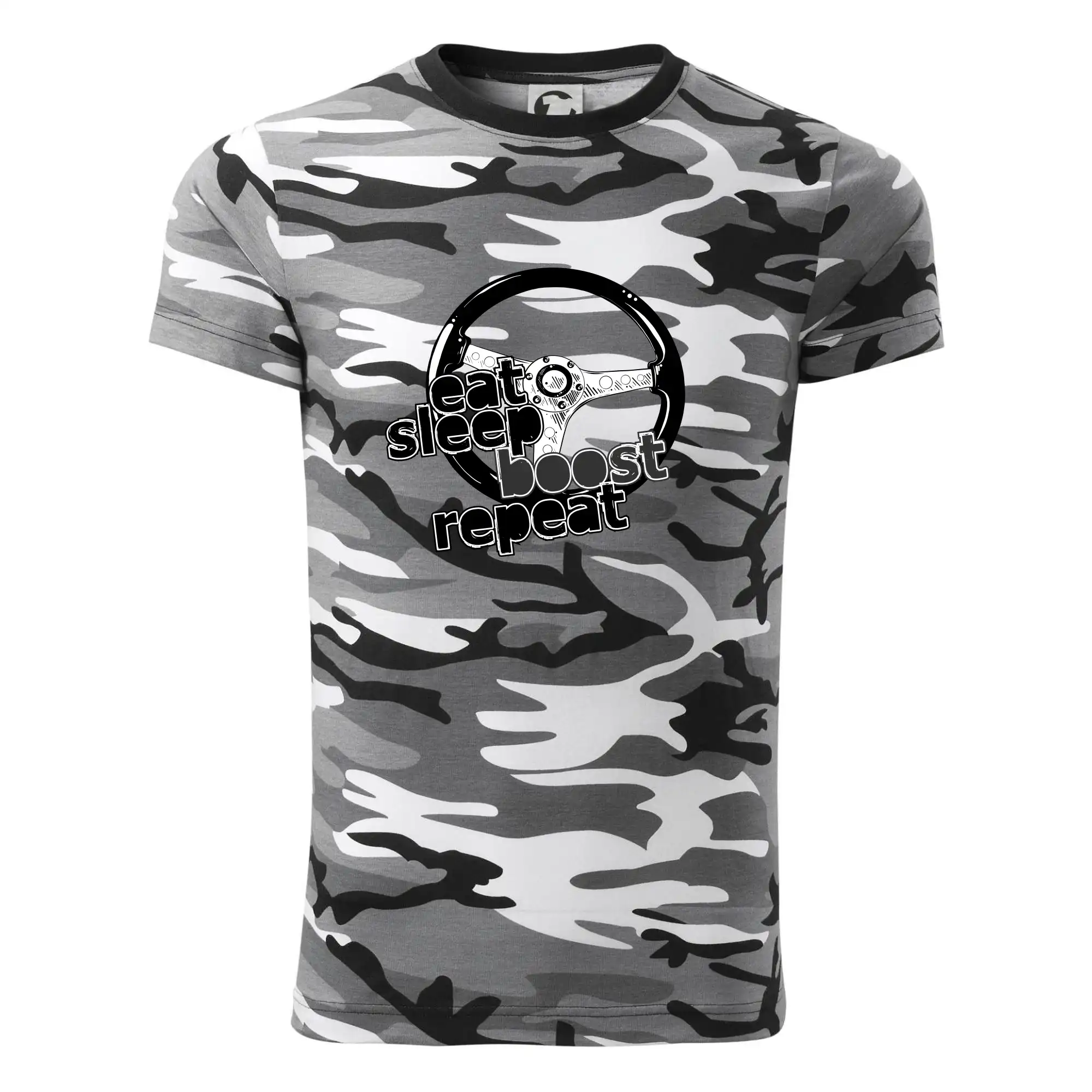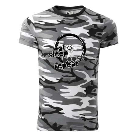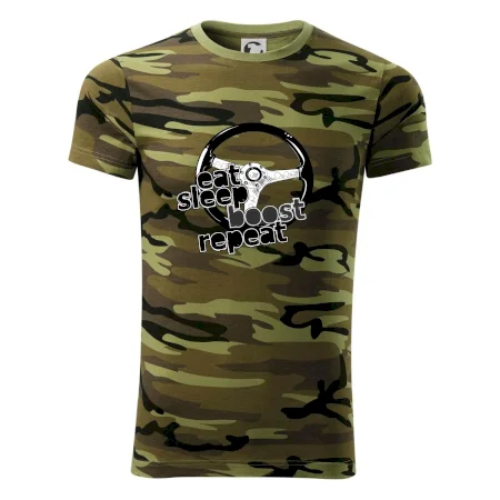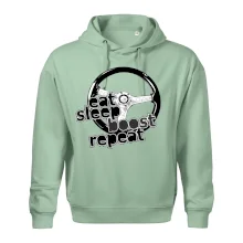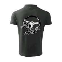 Triko pro řidiče s nápisem "Eat Sleep Boost repeat". Tohle triko za volant by měl mít každý zapálený řidič. Dárek pro automobilového závodníka.