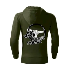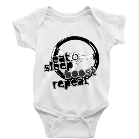 Triko pro řidiče s nápisem "Eat Sleep Boost repeat". Tohle triko za volant by měl mít každý zapálený řidič. Dárek pro automobilového závodníka.