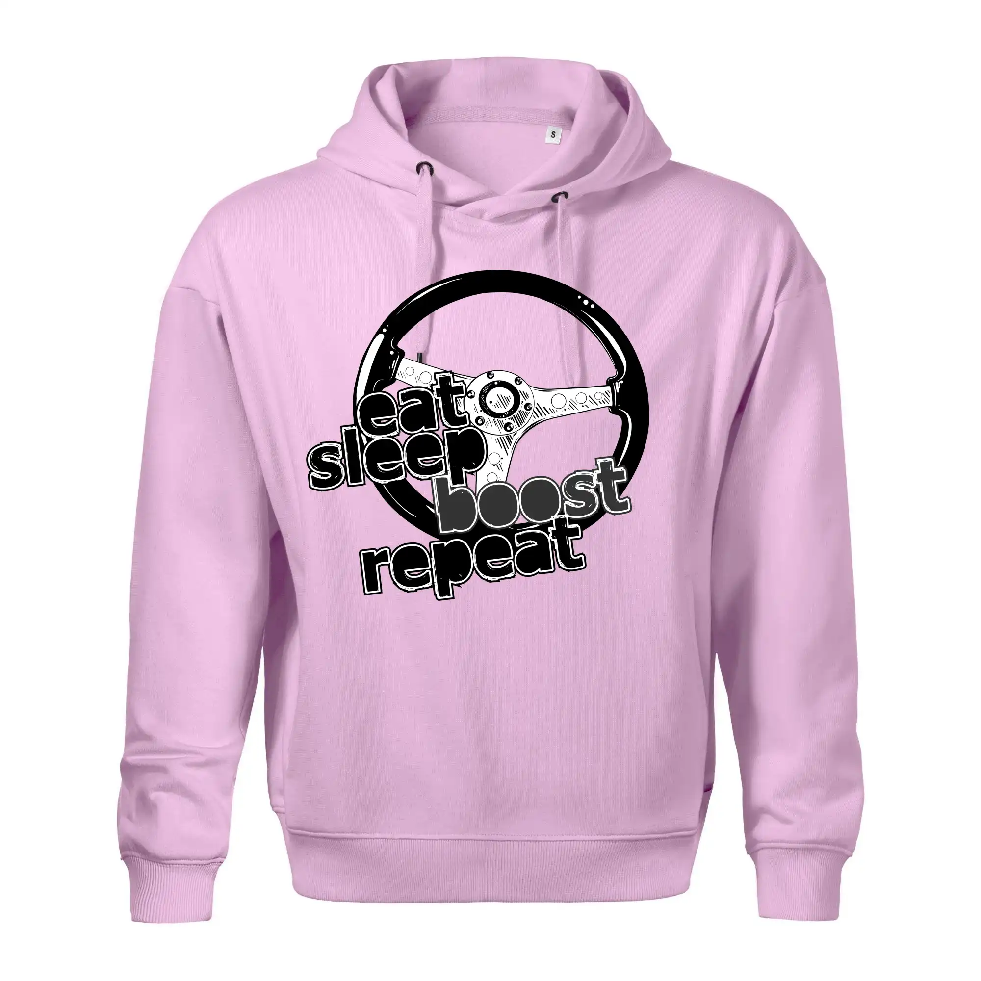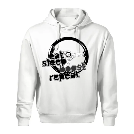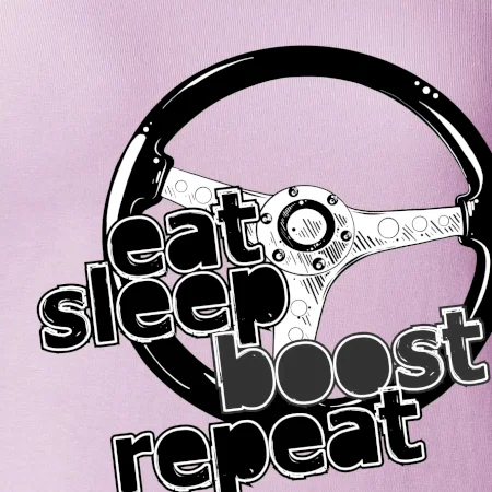Triko pro řidiče s nápisem "Eat Sleep Boost repeat". Tohle triko za volant by měl mít každý zapálený řidič. Dárek pro automobilového závodníka.