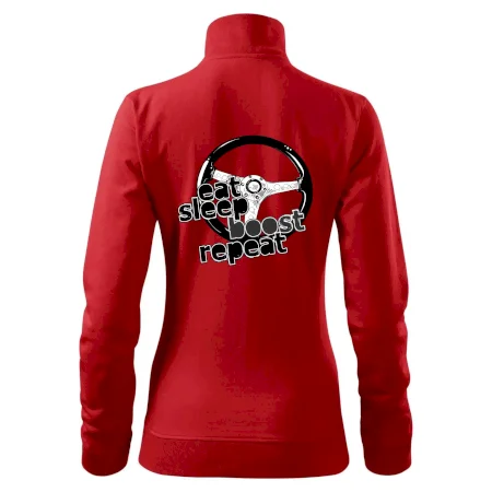 Triko pro řidiče s nápisem "Eat Sleep Boost repeat". Tohle triko za volant by měl mít každý zapálený řidič. Dárek pro automobilového závodníka.