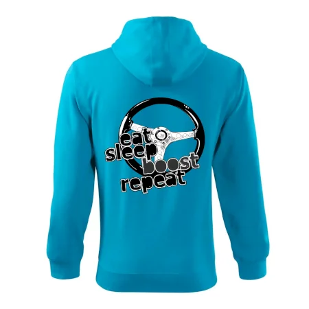 Triko pro řidiče s nápisem "Eat Sleep Boost repeat". Tohle triko za volant by měl mít každý zapálený řidič. Dárek pro automobilového závodníka.