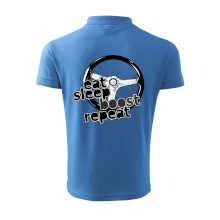 Triko pro řidiče s nápisem "Eat Sleep Boost repeat". Tohle triko za volant by měl mít každý zapálený řidič. Dárek pro automobilového závodníka.