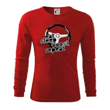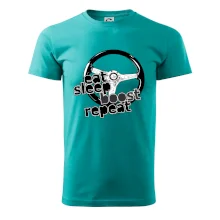 Triko pro řidiče s nápisem "Eat Sleep Boost repeat". Tohle triko za volant by měl mít každý zapálený řidič. Dárek pro automobilového závodníka.