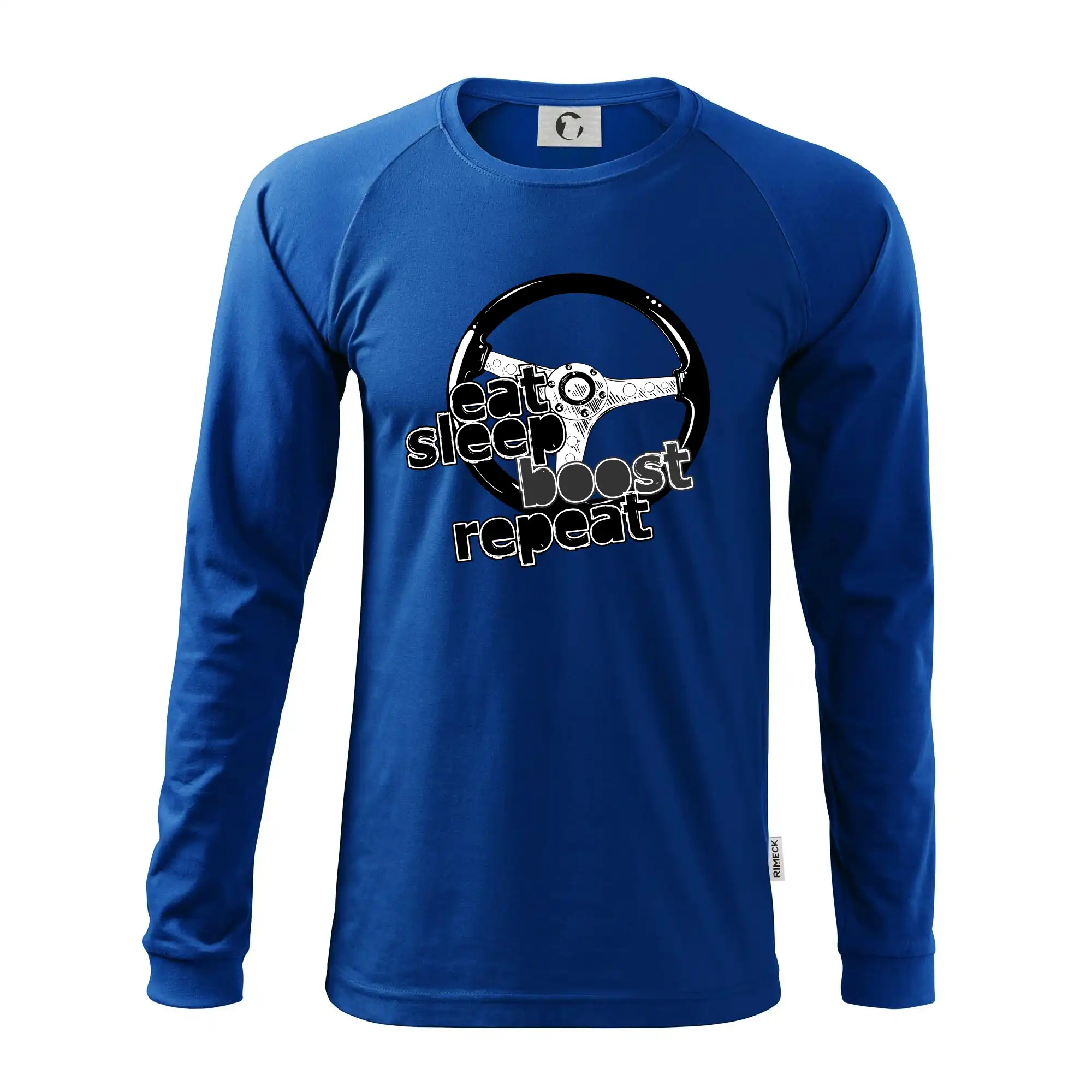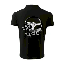 Triko pro řidiče s nápisem "Eat Sleep Boost repeat". Tohle triko za volant by měl mít každý zapálený řidič. Dárek pro automobilového závodníka.
