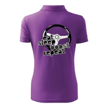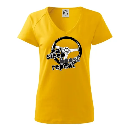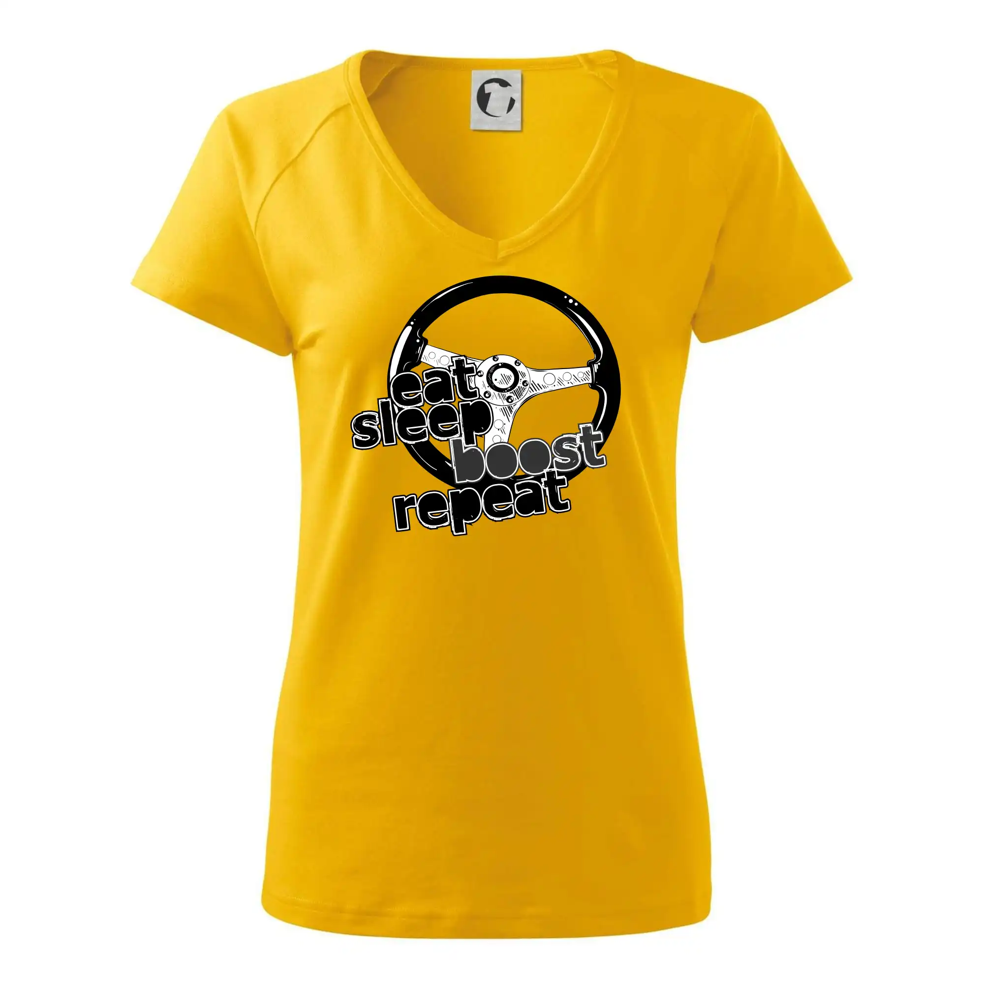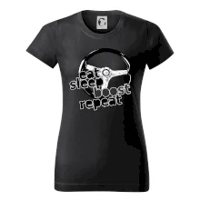 Triko pro řidiče s nápisem "Eat Sleep Boost repeat". Tohle triko za volant by měl mít každý zapálený řidič. Dárek pro automobilového závodníka.