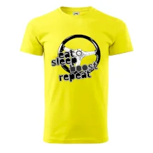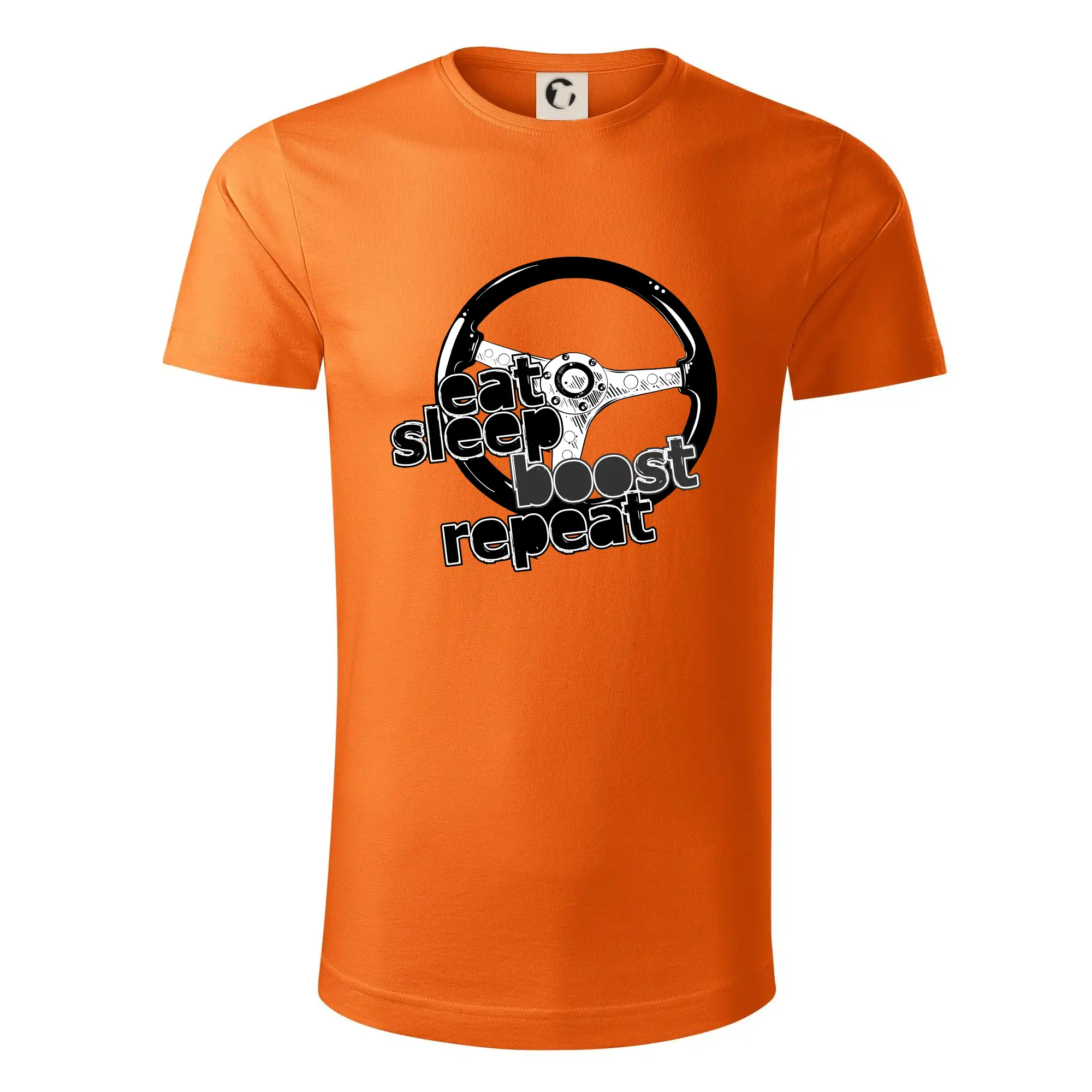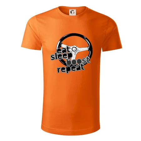 Triko pro řidiče s nápisem "Eat Sleep Boost repeat". Tohle triko za volant by měl mít každý zapálený řidič. Dárek pro automobilového závodníka.