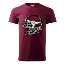 Triko pro řidiče s nápisem "Eat Sleep Boost repeat". Tohle triko za volant by měl mít každý zapálený řidič. Dárek pro automobilového závodníka.