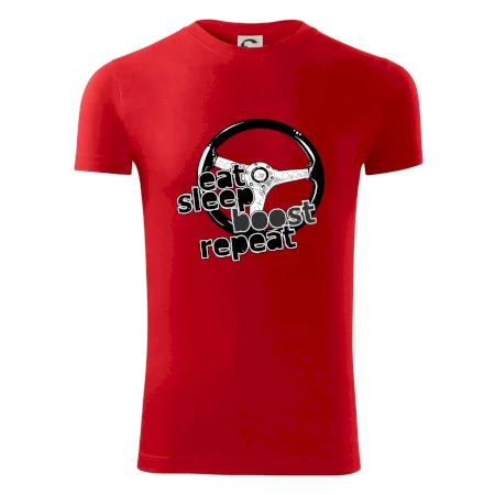 Triko pro řidiče s nápisem "Eat Sleep Boost repeat". Tohle triko za volant by měl mít každý zapálený řidič. Dárek pro automobilového závodníka.