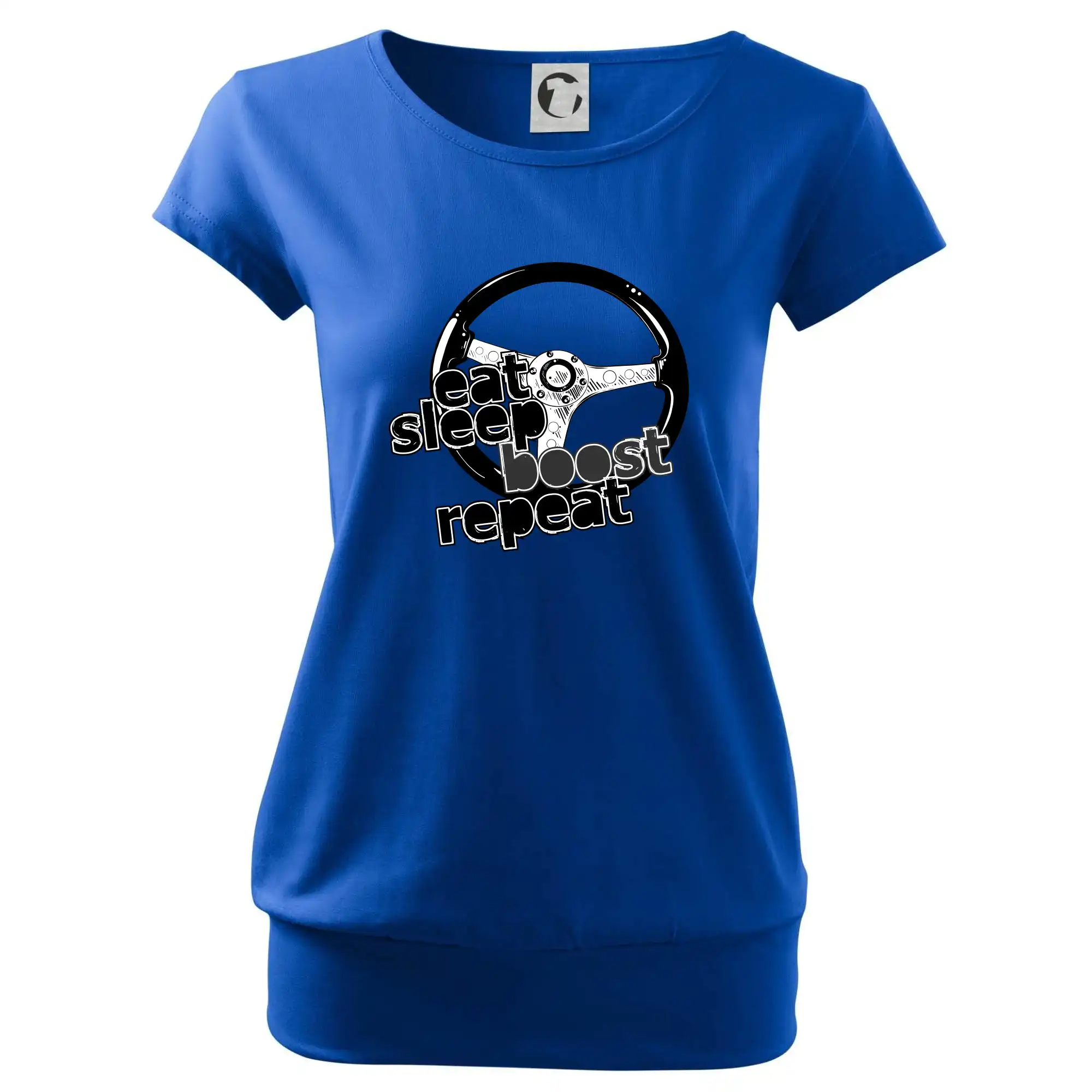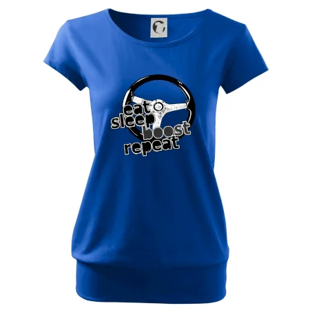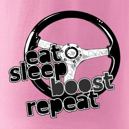 Triko pro řidiče s nápisem "Eat Sleep Boost repeat". Tohle triko za volant by měl mít každý zapálený řidič. Dárek pro automobilového závodníka.