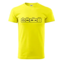 Pánské tričko s krátkým rukávem vyšší gramáže. Módní, přiléhavý střih s bočními švy. Úzký lem průkrčníku ze žebrového úpletu s přídavkem 5 % elastanu. Vnitřní část zadního průkrčníku začištěna páskou. Zpevněný ramenní šev.
