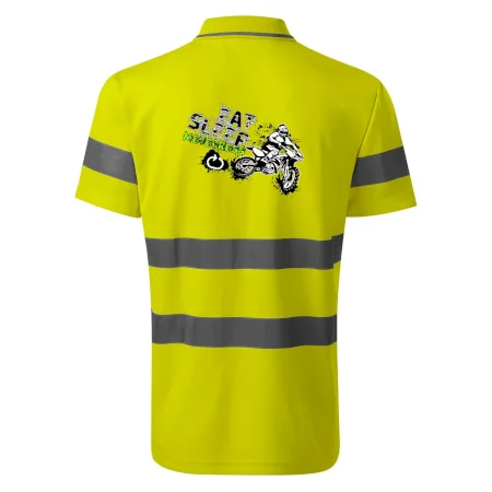 Reflexní polokošile MALFINI HV Runway 2V9 zajišťuje vysokou viditelnost díky fluorescenčnímu polyesteru a certifikovaným retroreflexním pruhům 3M. Pohodlná díky vnitřní bavlněné vrstvě, s bočními švy, žebrovaným límečkem s kontrastním pruhem a légou se třemi knoflíky. Splňuje normy EN ISO 20471 (třída 2) a EN ISO 13688, ideální pro práci i volný čas. Dostupná v reflexní žluté a oranžové, velikosti S-3XL.