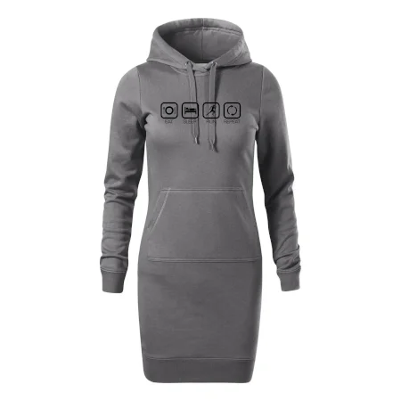Dámské mikinové šaty MALFINI Snap 419 jsou ideální volbou pro ženy, které hledají pohodlný a stylový kousek pro volný čas nebo každodenní nošení. Lehce vypasovaný střih s bočními švy podtrhuje ženskou siluetu, zatímco kapuce s podšívkou a stahovací šňůrkou dodává ležérní vzhled.