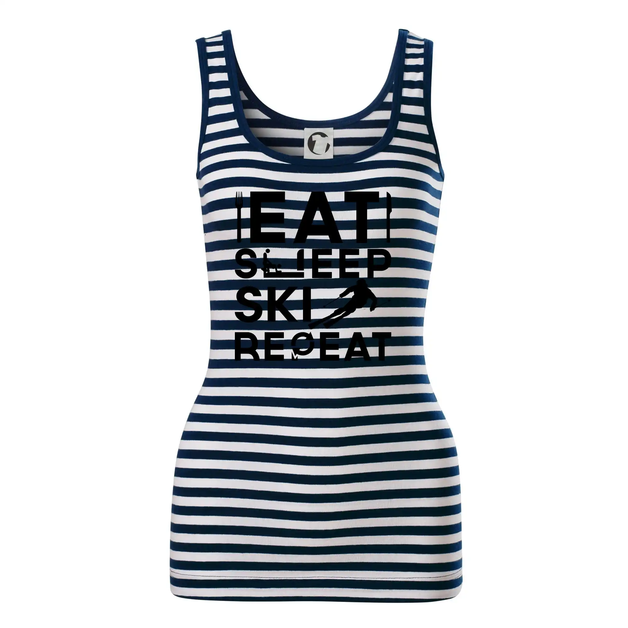 Dámské tílko MALFINI Sailor Top 806 přináší ikonický námořnický vzhled s bílo-modrými pruhy, ideální pro letní dny, výlety nebo ležérní outfity.