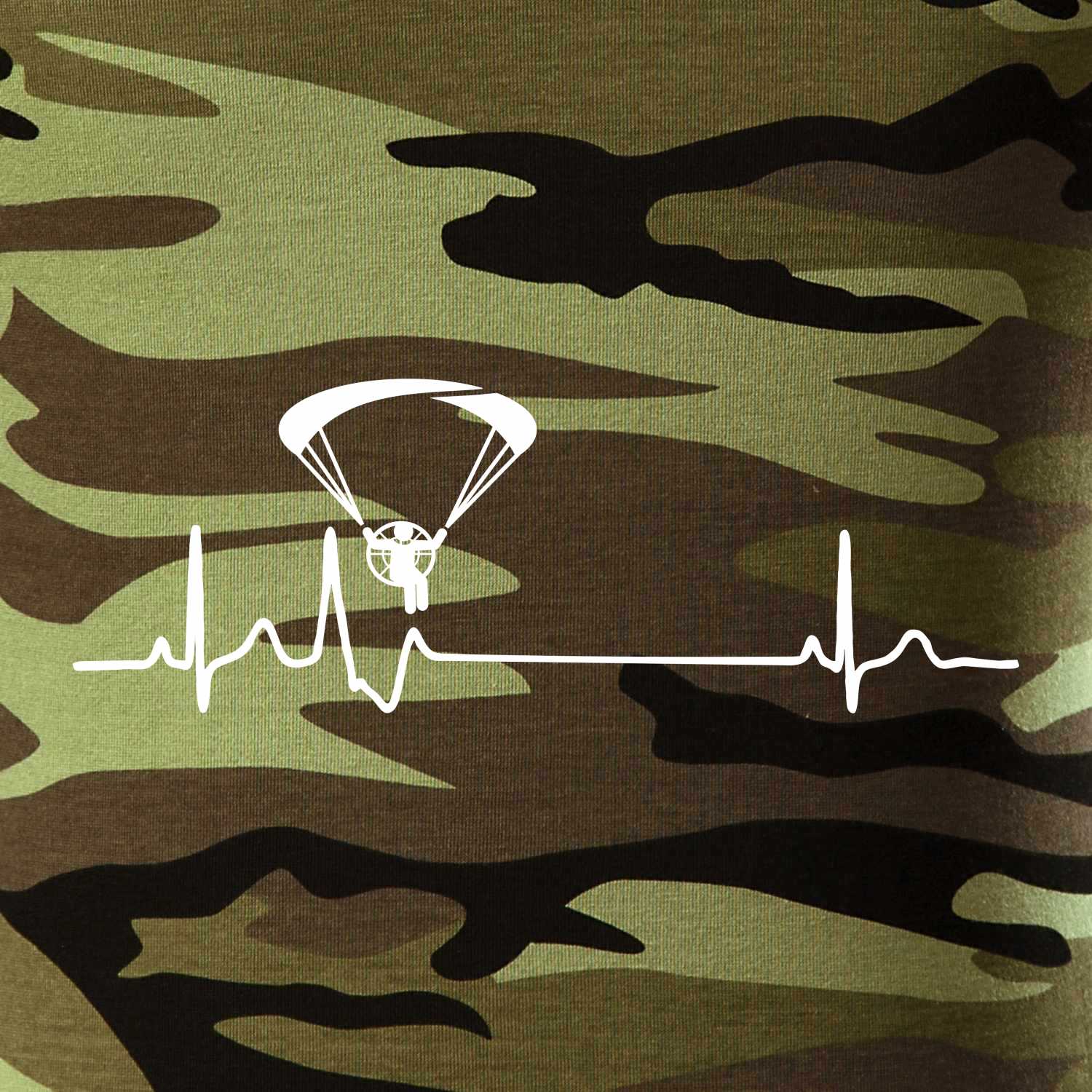 Tričko střední gramáže v barvách camouflage. Střih s bočními švy. Lem průkrčníku ze žebrového úpletu s přídavkem 5 % elastanu. Vnitřní část zadního průkrčníku začištěna páskou v barvě camouflage.