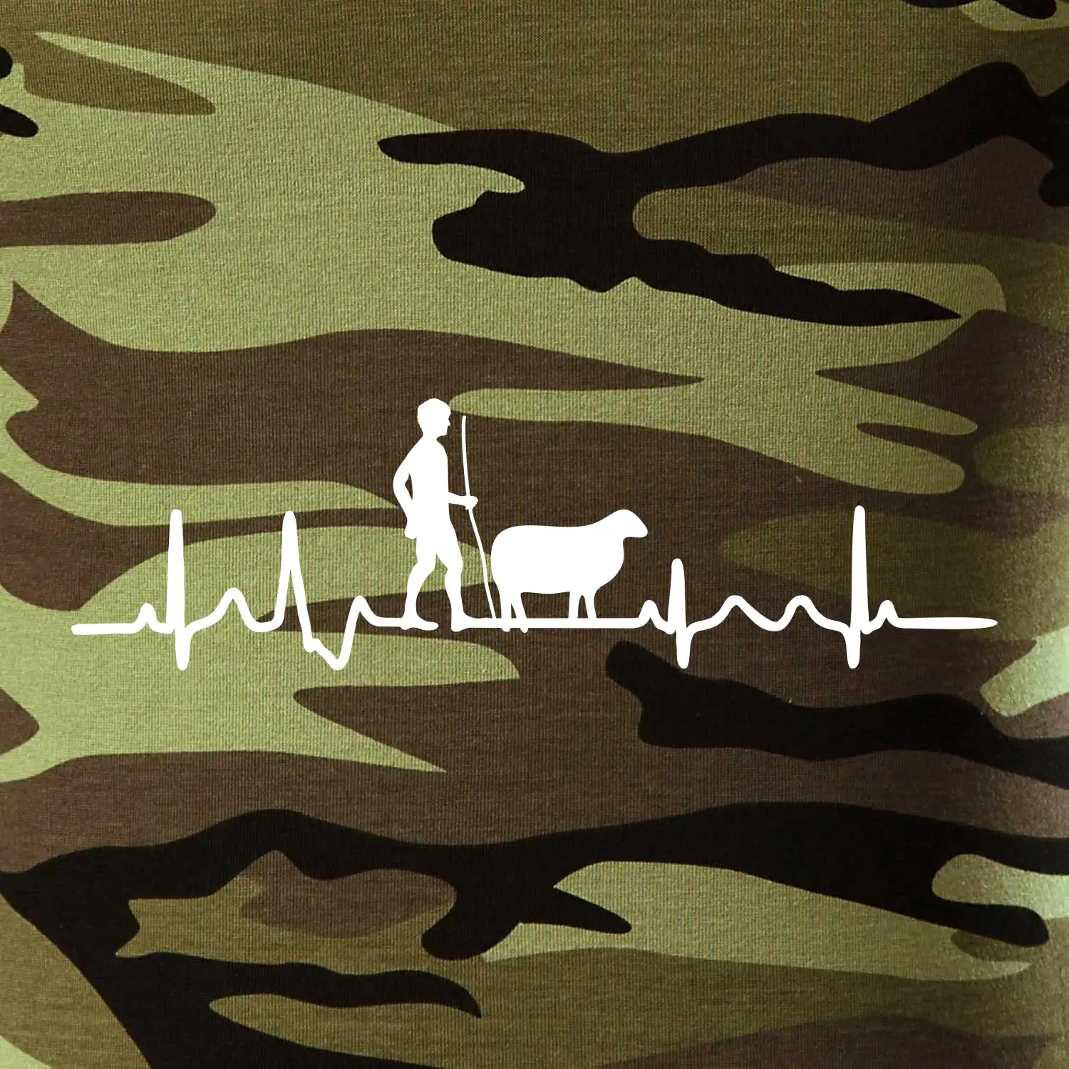 Tričko střední gramáže v barvách camouflage. Střih s bočními švy. Lem průkrčníku ze žebrového úpletu s přídavkem 5 % elastanu. Vnitřní část zadního průkrčníku začištěna páskou v barvě camouflage.