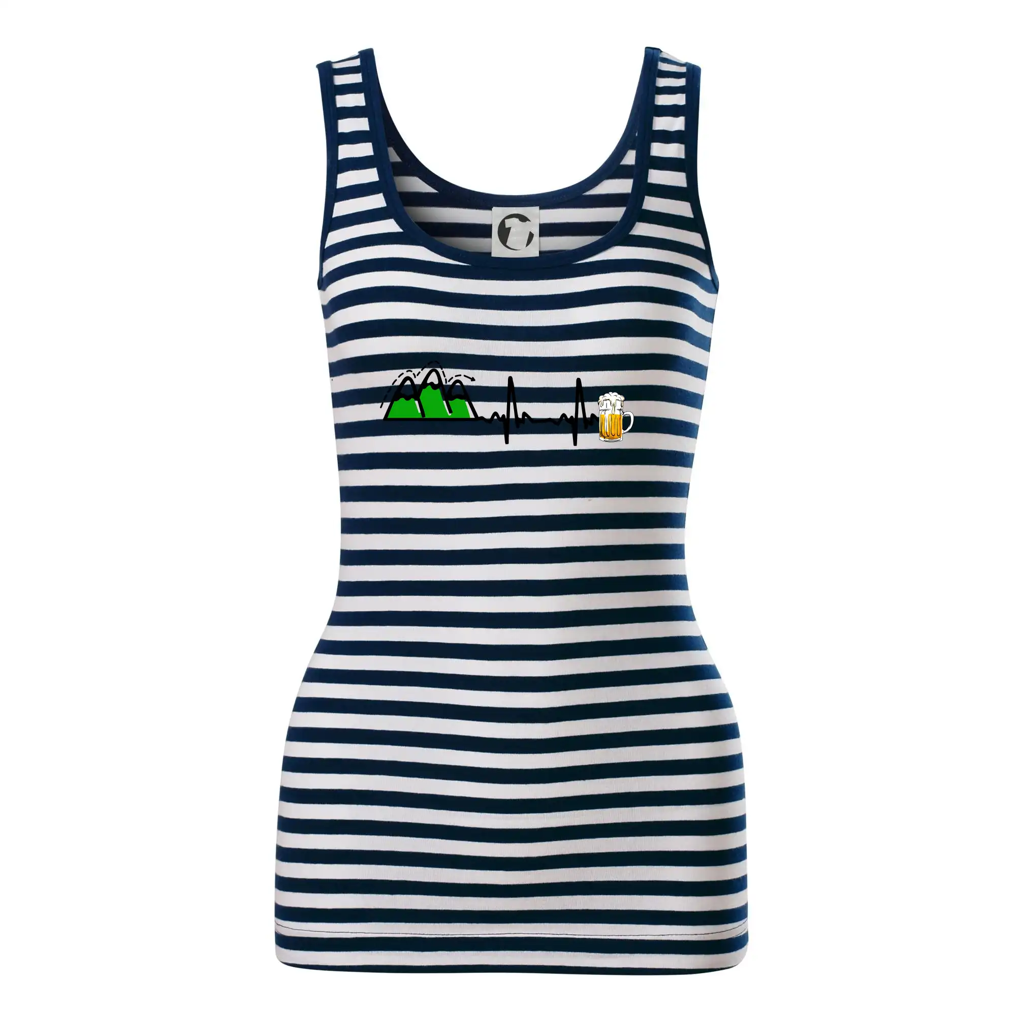 Dámské tílko MALFINI Sailor Top 806 přináší ikonický námořnický vzhled s bílo-modrými pruhy, ideální pro letní dny, výlety nebo ležérní outfity.