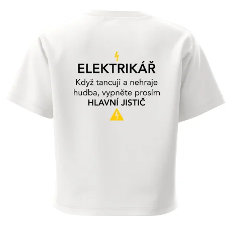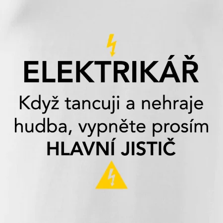Elektrikář - hlavní jistič - Nápis na zádech