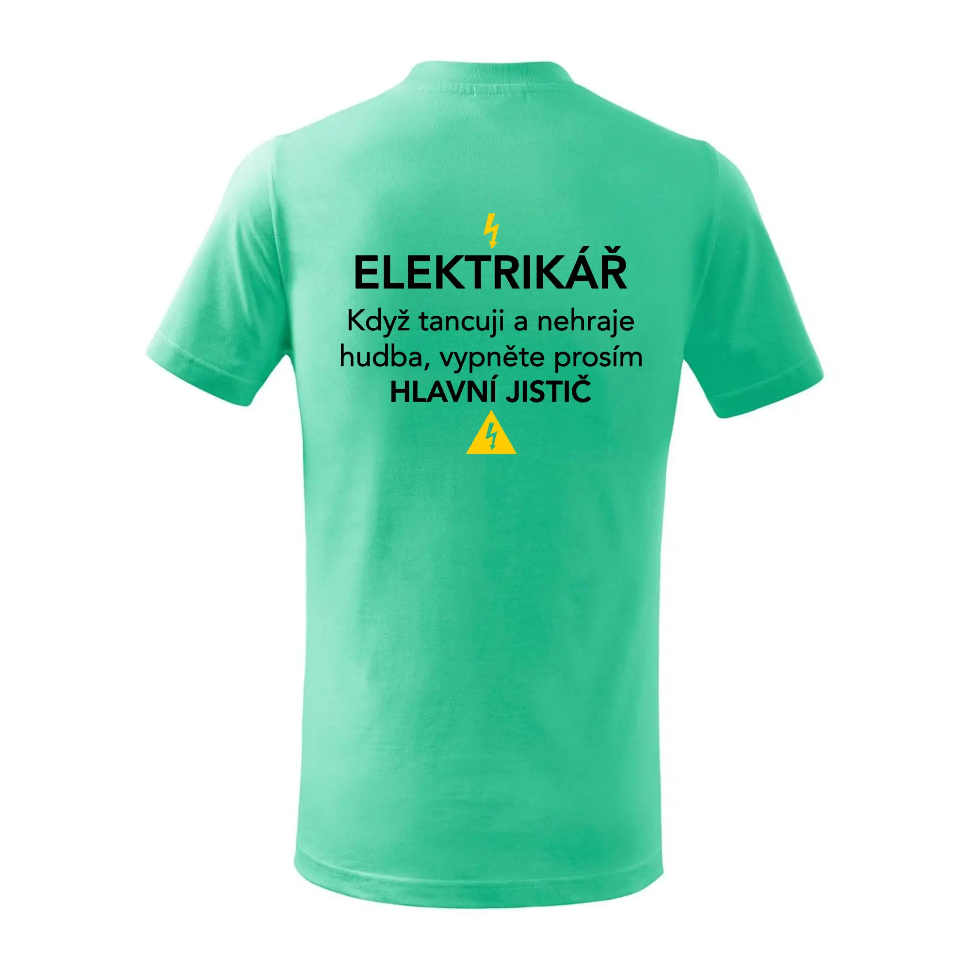 Elektrikář - hlavní jistič - Nápis na zádech